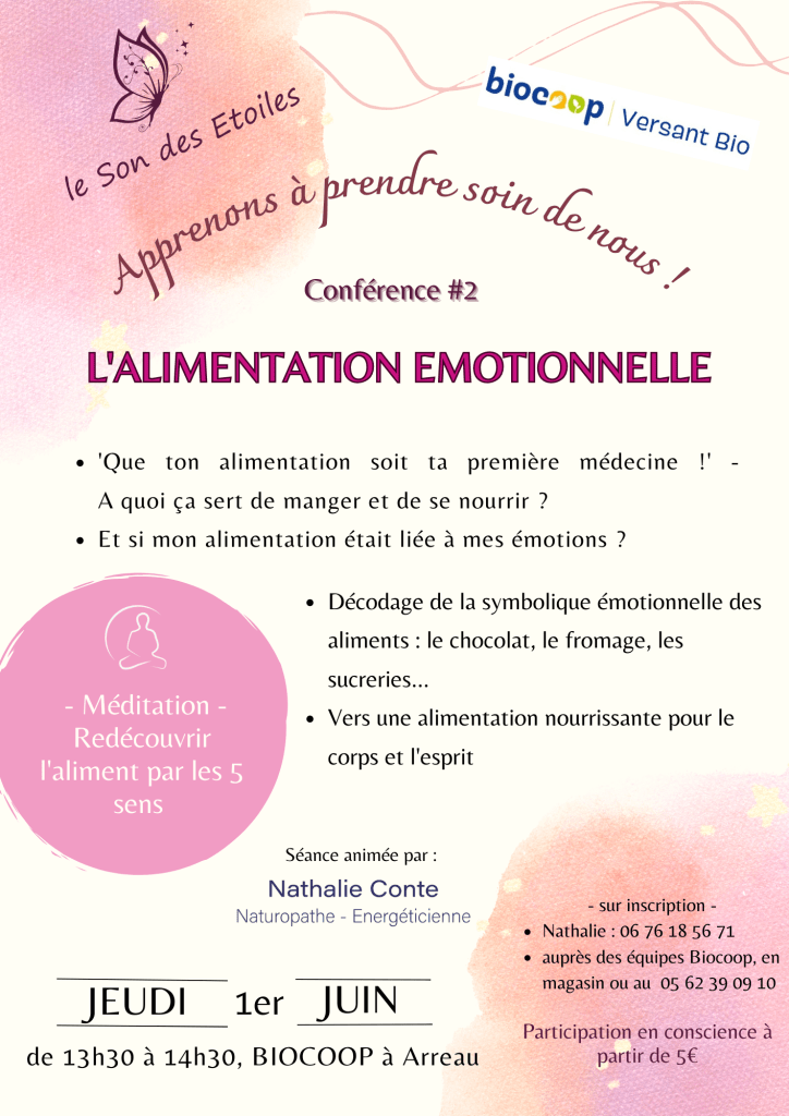 Jeudi 1er juin j’ai organisé une conférence à la Biocoop de Arreau sur l’alimentation émotionnelle