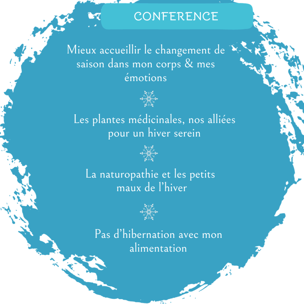 Une conférence organisée pour mieux comprendre l’impact de la saison à venir sur le corps et les cœurs : en hiver je trouve ma lumière dans l’obscurité pendant que la nature est en dormance.